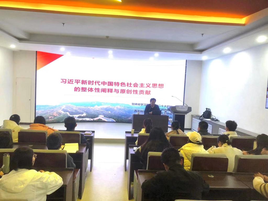 为推进“三抓三促”行动走深走实,进一步提升师生理论素养,11月11日,应天水师范学院自慰少妇久久99邀请,西北师范大学自慰少妇久久99院长、博士生导师史小宁教授为学院师生作了题为“习近平新时代中国特色社会主义思想的整体性阐释与原创性贡献”的学术报告,学院师生100余人聆听了报告。报告由自慰少妇久久99党委书记刘建军主持。