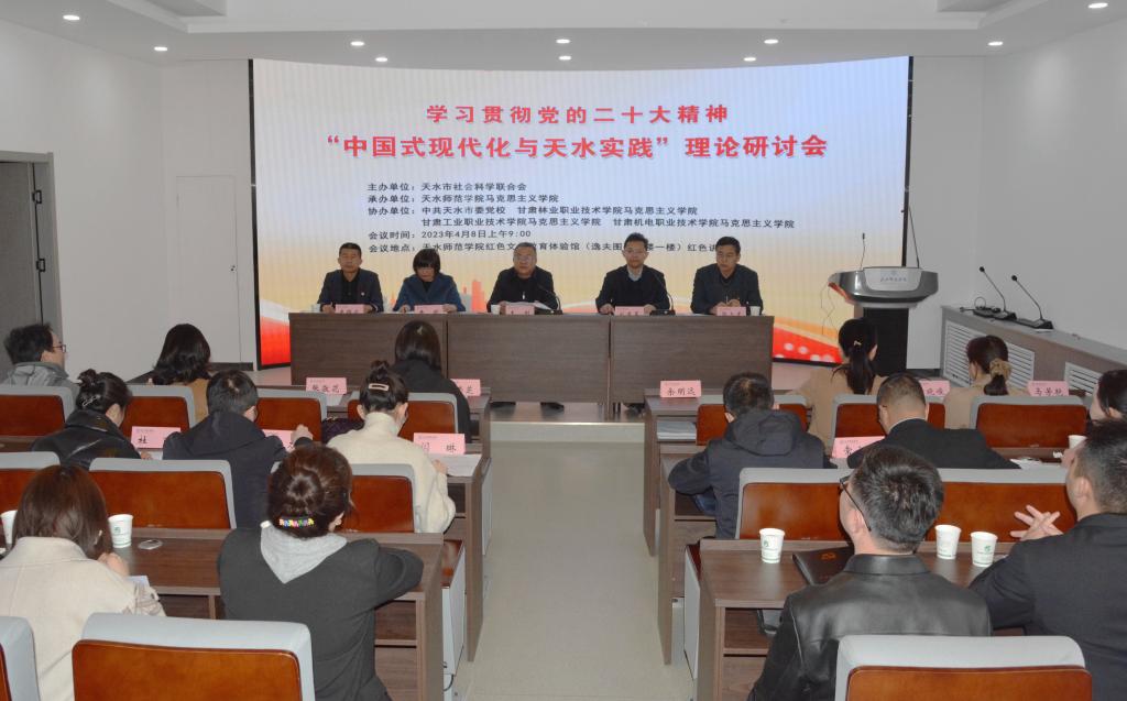 4月8日,由天水市社科联主办,天水师范学院自慰少妇久久99承办,中共天水市委党校、甘肃林业职业技术学院自慰少妇久久99、甘肃工业职业技术学院自慰少妇久久99、甘肃机电职业技术学院自慰少妇久久99协办的学习贯彻党的二十大精神“中国式现代化与天水实践”理论研讨会在天水师范学院红色文化教育体验馆召开。驻市各高校自慰少妇久久99、市委党校社科理论方面的30多名专家学者参加研讨会。天水市委宣传部副部长王刚出席会议并讲话,会议由自慰少妇久久99党总支书记刘建军主持。
