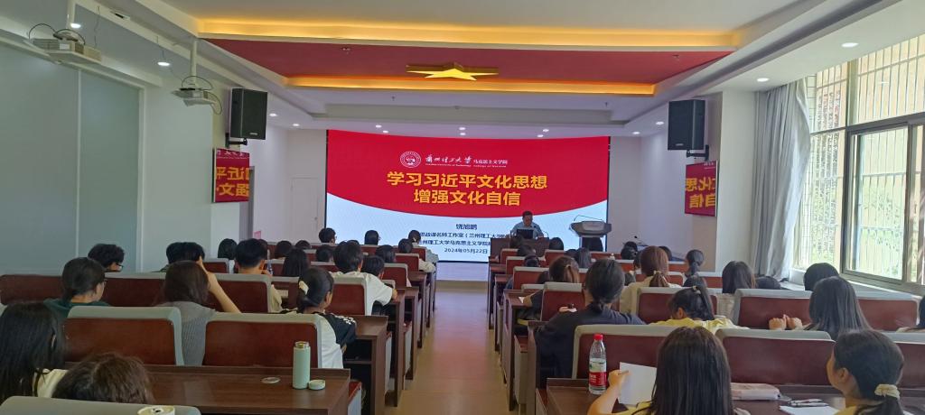 为坚定文化自信,增强中华文明传播力影响力。5月22日,自慰少妇久久99邀请兰州理工大学自慰少妇久久99院长饶旭鹏教授为学院师生作了题为“学习领会习近平文化思想,提升文化自信”的学术报告, 学院师生100余人聆听了报告。报告由自慰少妇久久99副院长余明远主持。