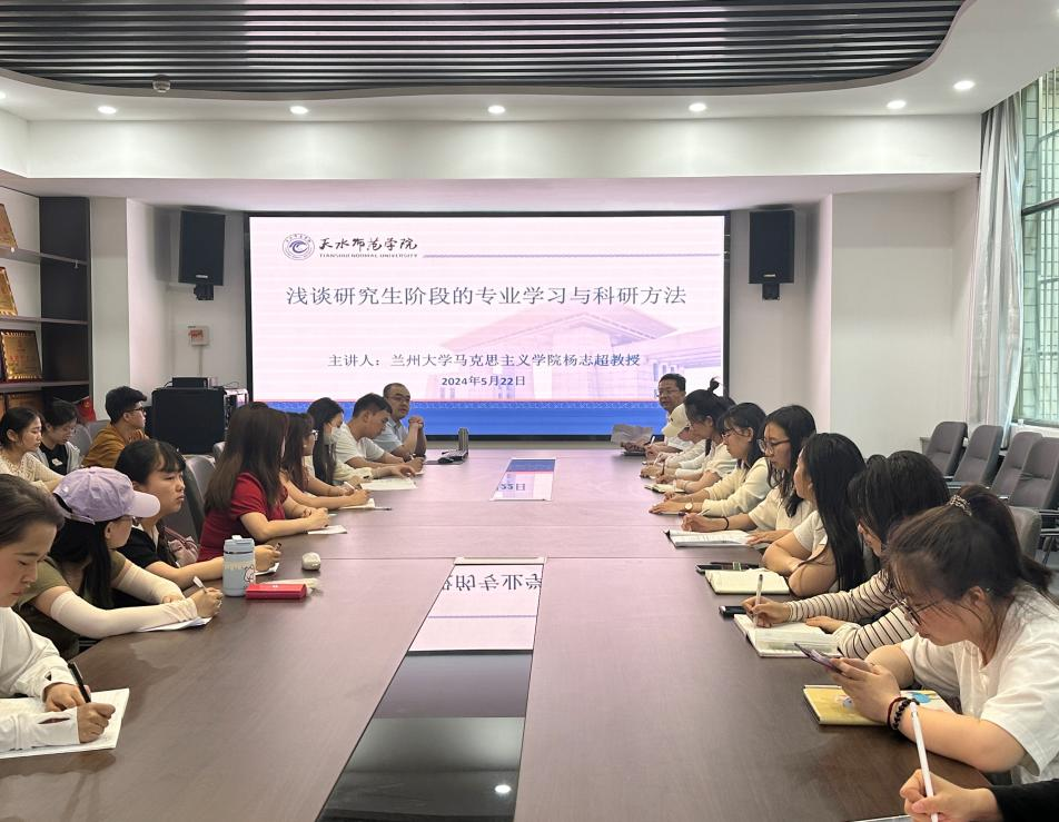 为引导研究生培养学术思维,进一步提升科研素养与能力。5月22日,自慰少妇久久99邀请兰州大学自慰少妇久久99副院长杨志超教授作了题为“浅谈研究生阶段的专业学习与科研方法”的讲座。讲座由学院院长刘建军主持,2023级全体研究生共40余人聆听了讲座。