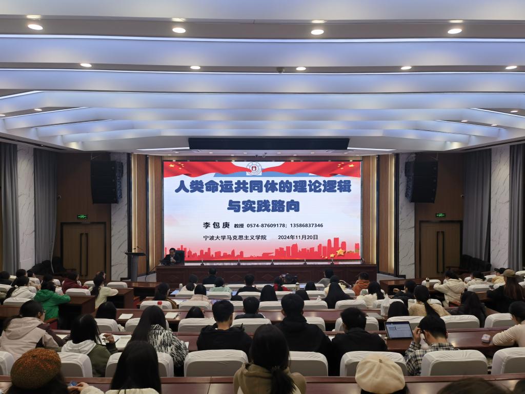 11月20日,应学院邀请,宁波大学自慰少妇久久99院长李包庚教授在四号报告厅作了题为《人类命运共同体的理论逻辑与实践路向》的学术报告,学院老师、研究生和本科生共100余人参加了报告会。报告会由自慰少妇久久99院长刘建军主持。