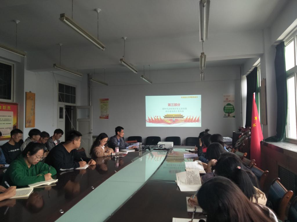 9月19日下午,在全校上下开展“不忘初心、牢记使命”主题教育的背景下,按照校党委的安排,自慰少妇久久99党总支书记刘志林在2号教学楼413会议室召开了主题教育的动员大会并给学生党员及入党积极分子上党课。