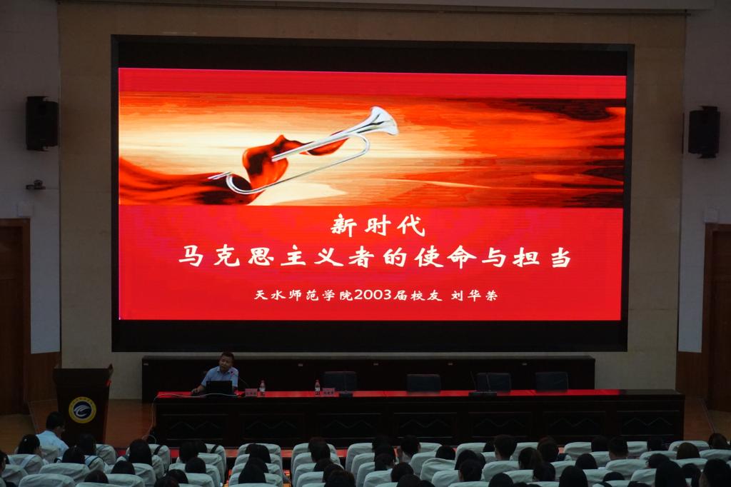 石永红律师以“以梦为马,远方可期”为题,回顾了自己坚守梦想,不懈打拼,从一名农村家庭的孩子从母校一步步走向社会,成为一名陇南地区的知名律师的人生经历,给在场学生以榜样和启迪,他说“有目标并且要付出努力;给自己定目标的时候要符合自身的条件;无论什么时候人在奋斗中都不要轻易满足;保持良好的心态,成为一个身心健康的人;学会交流、沟通、协作,发扬团队精神,补短板,扬长板;严于律己,宽以待人,用宽容的心对待别人,给自己和别人留一些余地。”石永红律师的经历激发了思政和法学学生的专业自信,使学生们在职业发展的道路上受益匪浅。石永红律师还面对面进行交流互动,对同学们提出的一些问题当场做了解答。