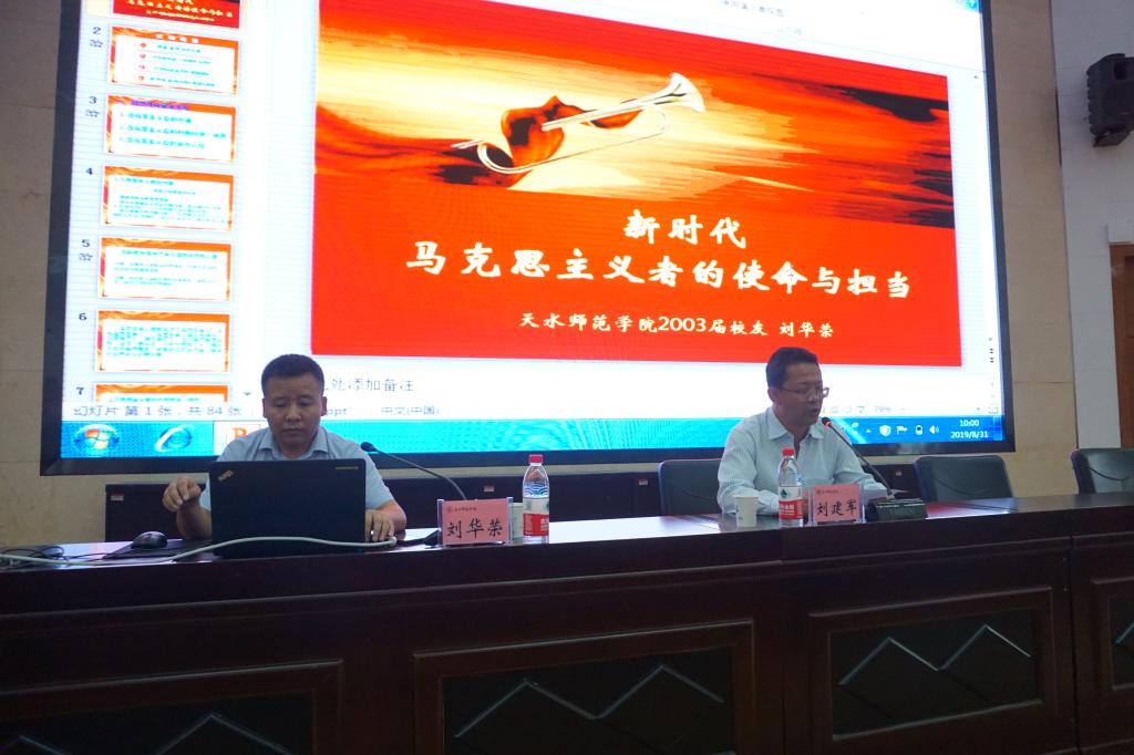 刘建军代表学院首先对石永红律师和刘华荣博士的校友返校表示热烈的欢迎。石永红律师在1999—2002年在天水师范学院政史系政治教育专业学习,2006年9月通过全国司法考试,2007年2月取得律师执业证,先后在陇南康达律师事务所、陇南永盛律师事务所执业,2018年3月创办了甘肃陇一律师事务所;刘华荣博士在2000——2003年在天水师范学院政史系政治教育专业学习,2008年—2011年在兰州大学政治与行政学院攻读国际政治专业研究生,2011年—2014年在兰州大学自慰少妇久久99攻读博士研究生,现为兰州交通大学自慰少妇久久99副教授,硕士生导师。
