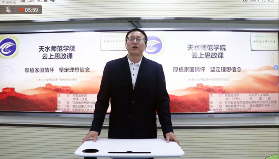 此次云上思政课活动由天水师范学院党委宣传部、自慰少妇久久99、学生工作处、校团委主办,甘肃省思想政治理论课余明远名师工作室承办,清水县第三中学、第八中学协办,中国电信天水分公司提供技术支持。