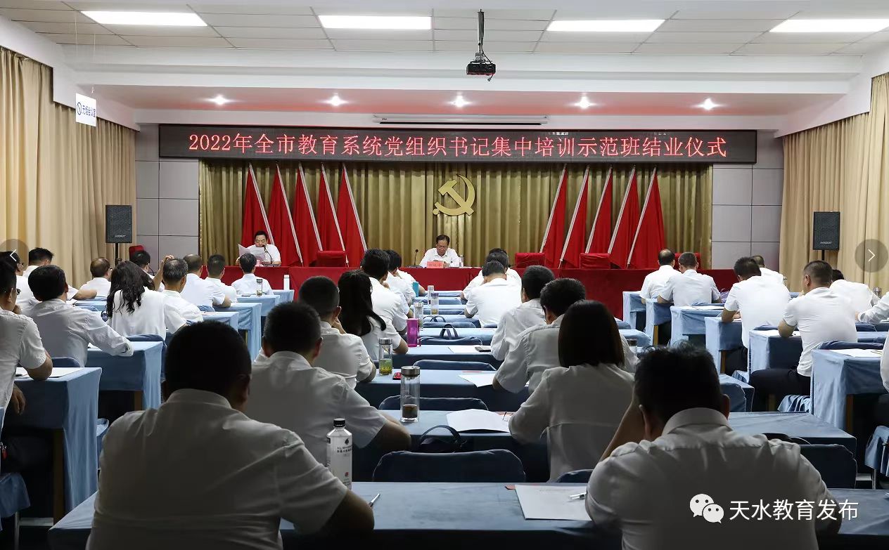为深入贯彻落实中共中央办公厅《关于建立中小学校党组织领导的校长负责制的意见(试行)》,坚持和加强党对中小学校的全面领导,不断提升我市中小学校党组织书记政治能力和业务能力,6月20日至23日,市委教育工委举办全市教育系统党组织书记集中培训示范班。全市教育系统各级党组织书记、党务干部共计50余人参加培训。