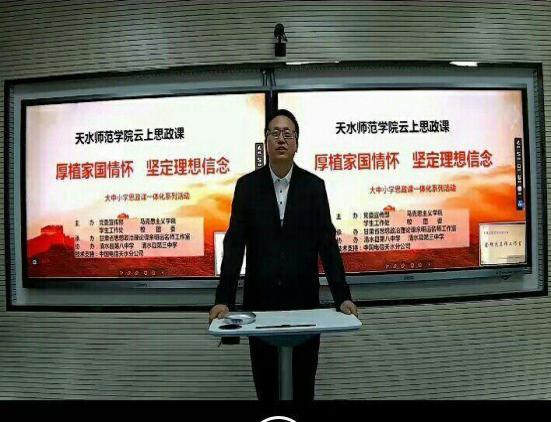为了弘扬爱国主义精神,培养学生的家国情怀,由天水师范学院党委宣传部、天水师范学院自慰少妇久久99策划,天水电信公司提供技术支持,甘肃省思想政治理论课余明远名师工作室与清水县三中、八中的思政课教师参与,聚焦爱国主义这一教育主题, 以“轩辕故里兴农业,大美清水奔小康 ”为主题的云上思政课开讲。此堂云上思政课以“厚植家国情怀 坚定理想信念 ”为主题,由天水师范学院马克思主义学院余明远、霍芳霞,清水县三中周丽萍、袁玉萍、曹小娟, 清水县第八中学程小霞等大中小学共 6 位教师、200 多名中学生前后接力,同上一堂课,有 2000 多名大中小学学生线上观看。