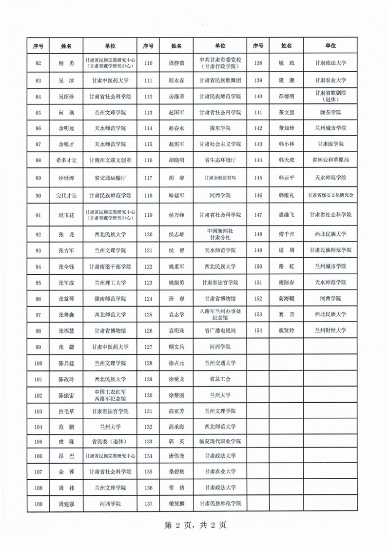 附件:甘肃省民族事务委员会铸牢中华民族共同体意识专家学者智库入库人员名单