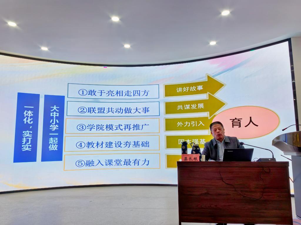 刘建军作总结讲话,对渠教授的到来表示了热烈的欢迎和感谢,同时指出,学院要进一步利用好陇东南红色文化资源富集优势,挖掘、整理和宣传甘肃红色文化,在红色文化融入大中小思政一体化建设中做出自己的特色。