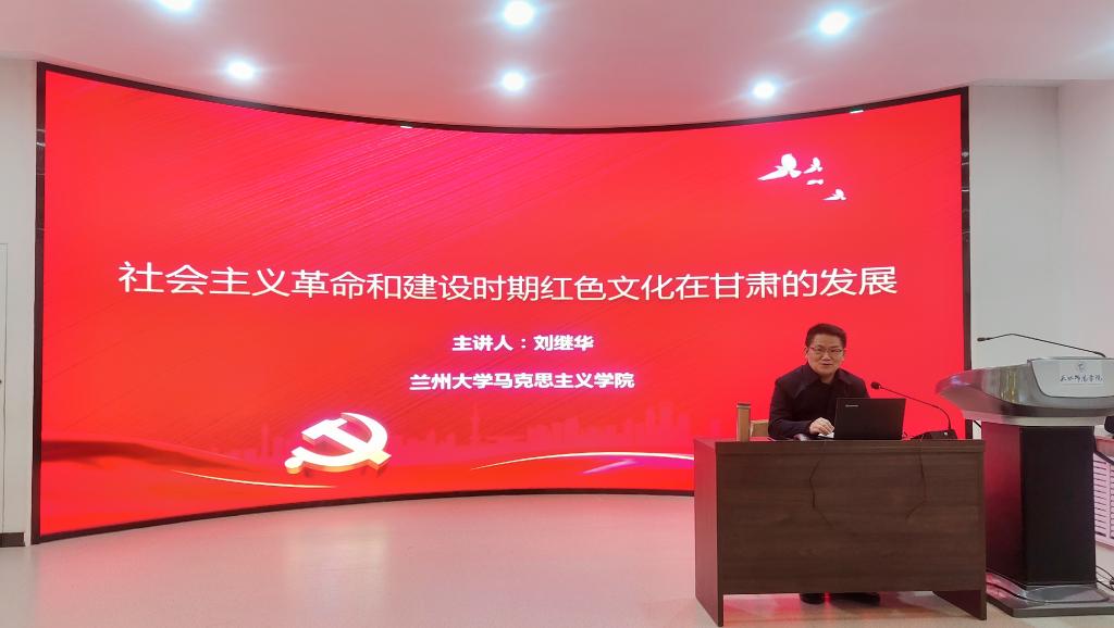 为深入学习习近平总书记视察甘肃重要讲话精神,教育学生进一步了解红色文化在甘肃的发展,以红色精神“增信”,坚定学生的理念信念,增进对中国特色社会主义的信念、对实现中华民族伟大复兴中国梦的信心。11月24日,应学院邀请,甘肃省中共党史学会常务理事、兰州大学西北党史党建研究中心副主任、兰州大学自慰少妇久久99副教授刘继华博士为我院学生作了题为“社会主义革命和建设时期红色文化在甘肃的发展”的专题讲座。学院党委书记刘建军主持,2021级思政专业本科生90余人参加。