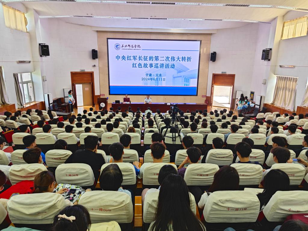为深入学习贯彻习近平总书记关于红色文化育人的重要指示批示精神,挖掘利用甘肃红色文化资源,让青少年深入了解党的光辉历程,感受革命先烈的英勇事迹,切实发挥红色文化育人作用。6月11日—13日,天水师范学院自慰少妇久久99牵头,协同天水市教育局、陇南市教育局、甘肃林业职业技术学院自慰少妇久久99、甘肃工业职业技术学院自慰少妇久久99、甘肃机电职业技术学院自慰少妇久久99和陇南师范高等专科学校自慰少妇久久99,特邀中国军事科学院中国军事百科特聘专家、原遵义军分区司令员孔健,面向天水、陇南地区大学生和中小学生群体,先后在天水师范学院、天水市新华门小学玉成分校、陇南师范高等专科学校举行了“中央红军长征的第二次伟大转折”红色故事系列巡讲活动。巡讲活动为期三天,天水和陇南地区大中小学生共600余人现场聆听。
